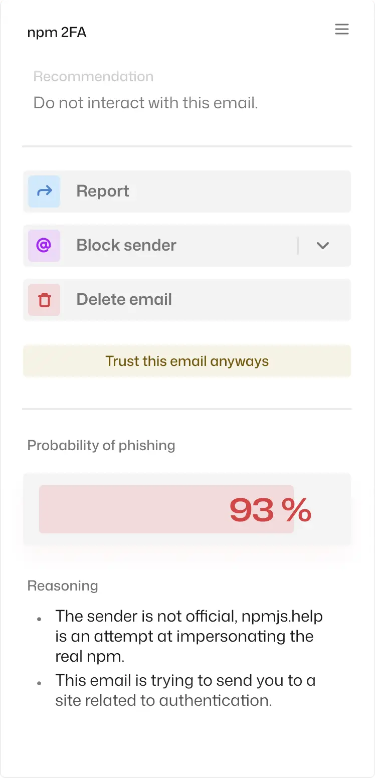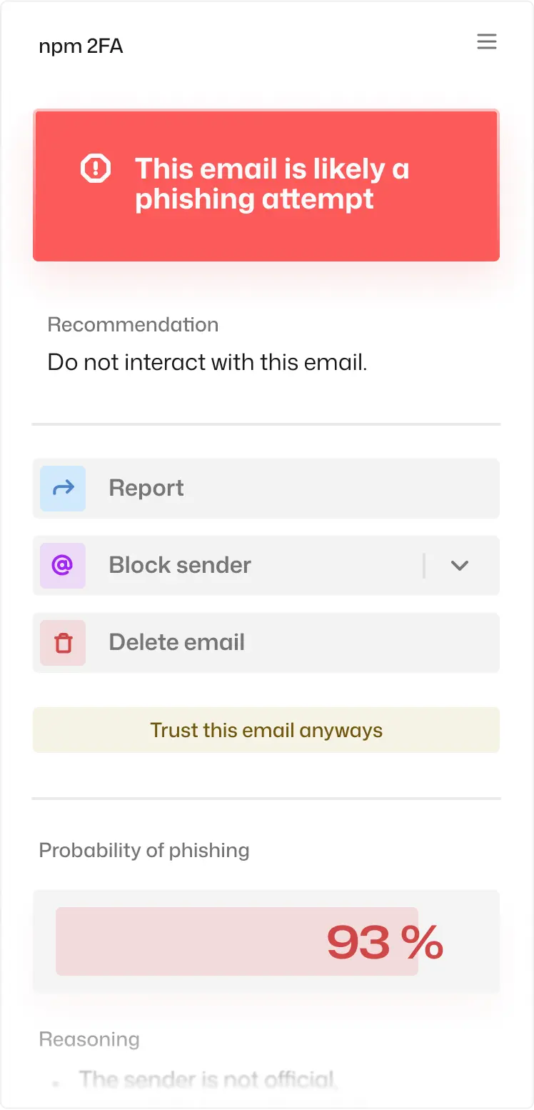 Traditional security creates alert fatigue. Skeptiva creates understanding. You don't just get a warning banner. You get a clear, concise explanation of why an email is suspicious, turning every potential threat into a lasting lesson.